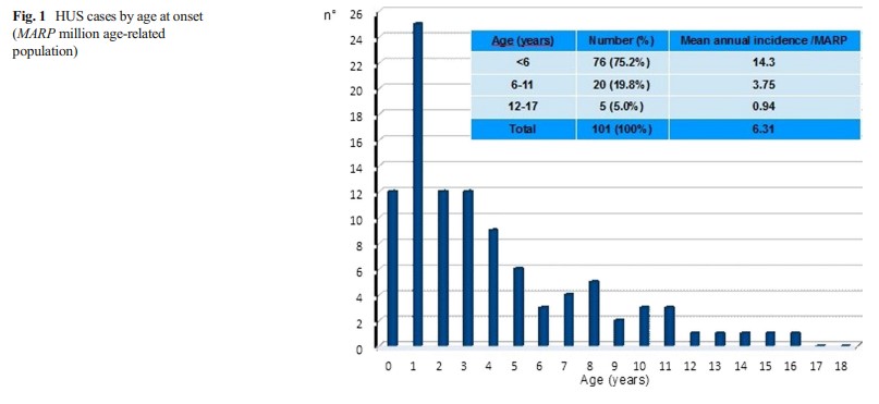 HUS에 대한 연령별 사례를 나타낸 그래프입니다