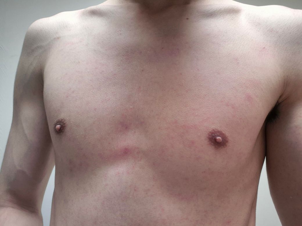 갑자기 상반신 전체에 붉은 반점?같은게 났어요