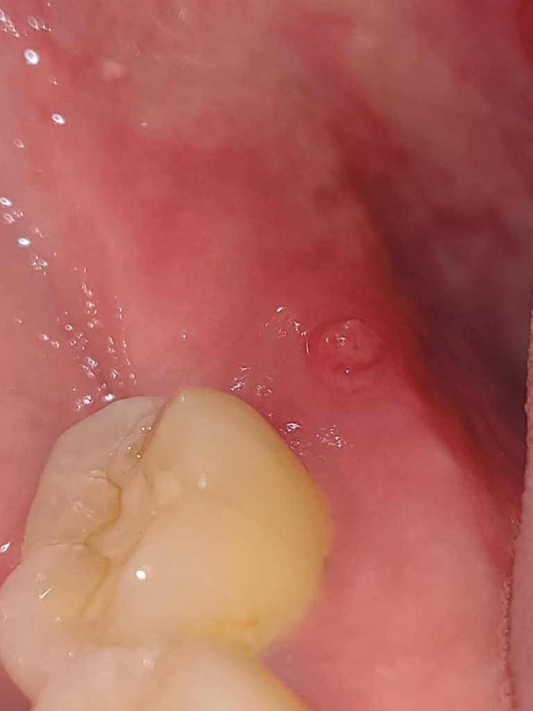 단순 잇몸 염증이라면 치과에 가셔서 마취후에 제거하시면되지만, 뿌리끝에서 나오는 염증이라면 신경치료를 하셔야될수도 있습니다.