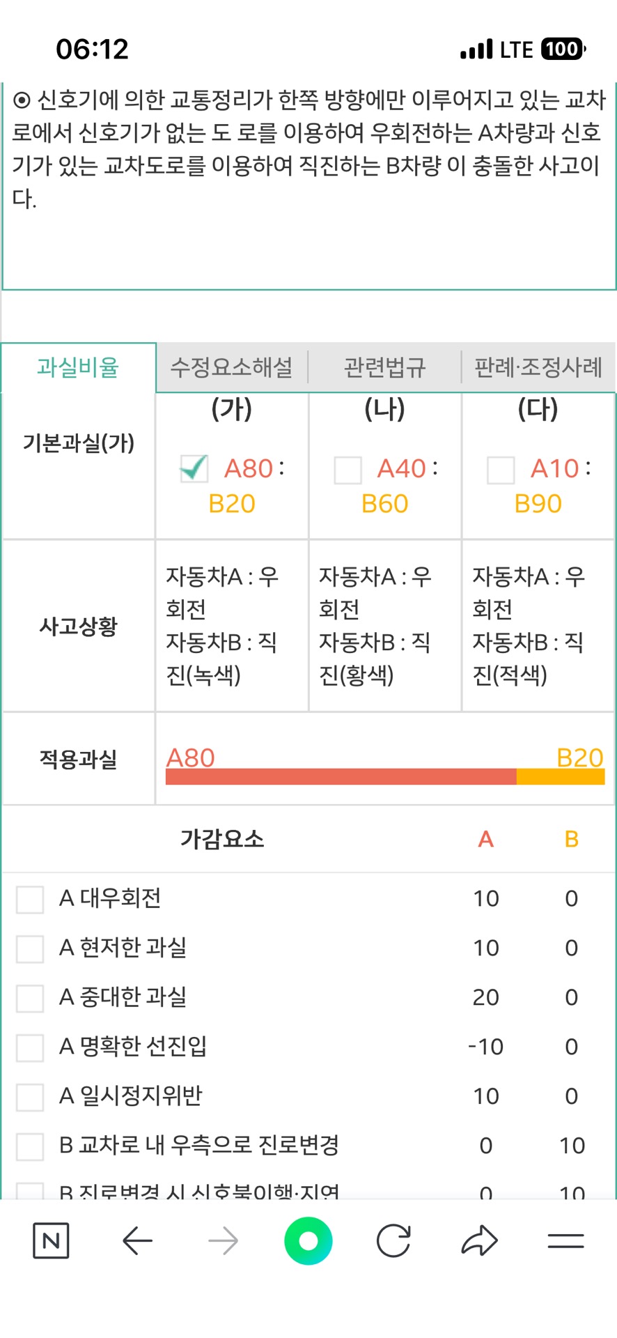 해당 기본 과실에서 정확한 사고 내용에 따라 과실이 조정될 수 있습니다.
