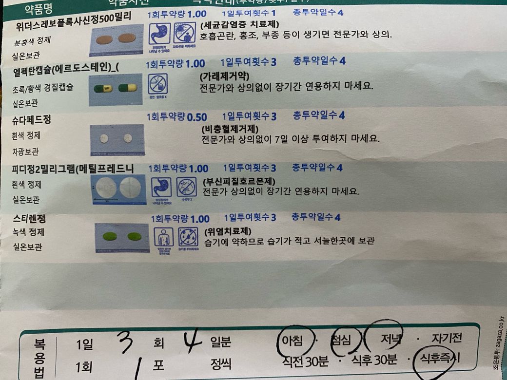 다만 항생제를 두 가지 드시게 되기 때문에 속쓰림, 설사와 같은 위장장애가 나타날 가능성이 높아질 수 있습니다
