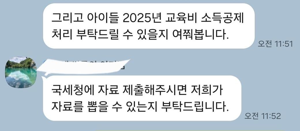 학부모님께서(6세 어머님) 2025년 교육비 소득공제가 가능한지 여쭤보십니다.