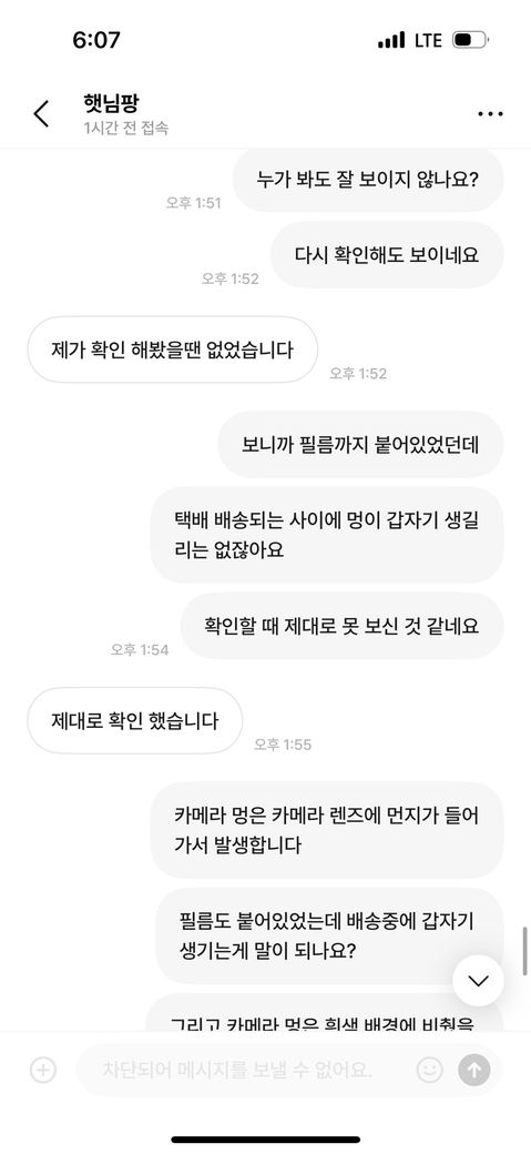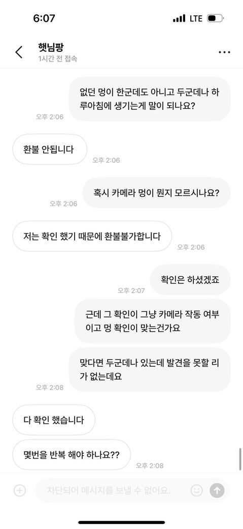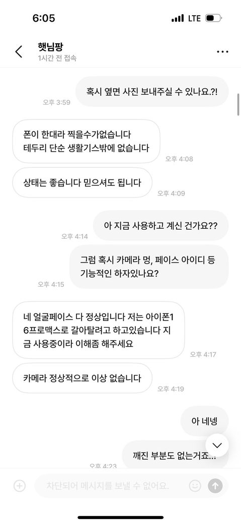 번개장터에서 중고 아이폰을 구매했습니다. 구매하기전 카메라에 멍이 있냐고 물었고 이상 없다고 답해서 믿고 구매를 했습니다. 전날 결제하고 오늘 배송이 와서 바로 확인해보니 카메라에 멍이 두군데나 있었습니다. 저는