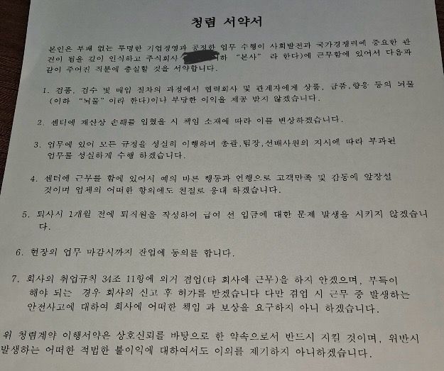 청렴계약서가 근로계약서인가요? 싸인해도되는건지 한번 봐주세요