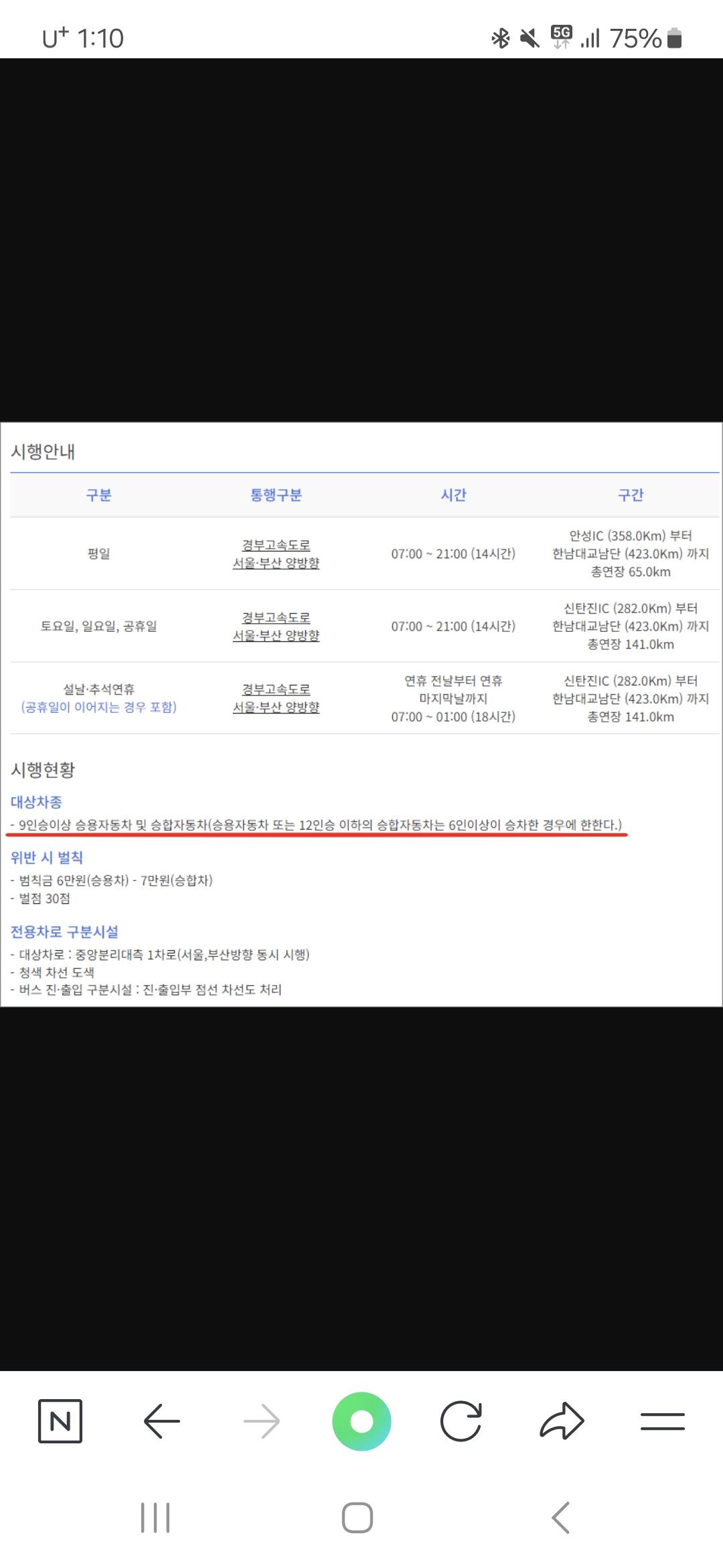 고속도로에서는9인승이상승합자동차이어야하며탑승인원은6명이상탑승해야고속도로버스전용차로로달릴수있습니다 일반승용차가버스전용차로달리면 교통법규위반입니다
