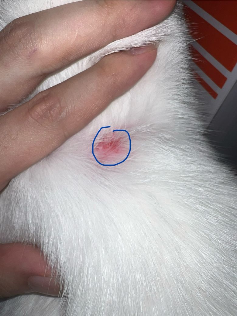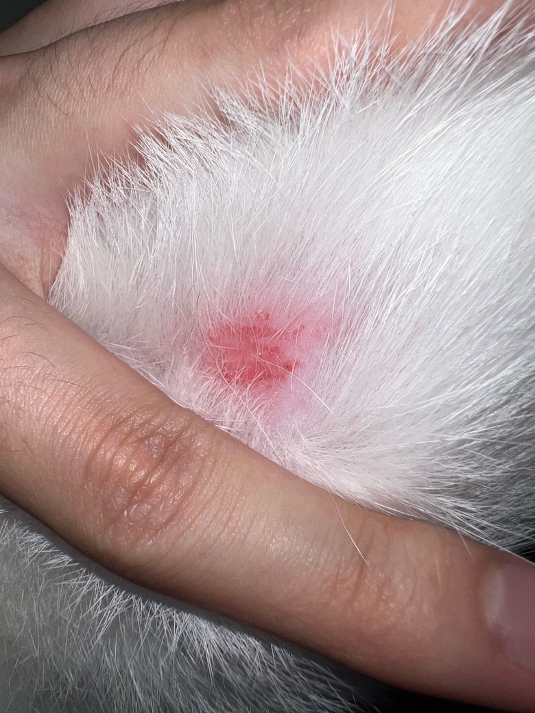 저 부분 털도 좀 빠졌고, 가려운지 계속 뒷발로 긁습니다. 진물이 약간 나오는 것 같습니다.