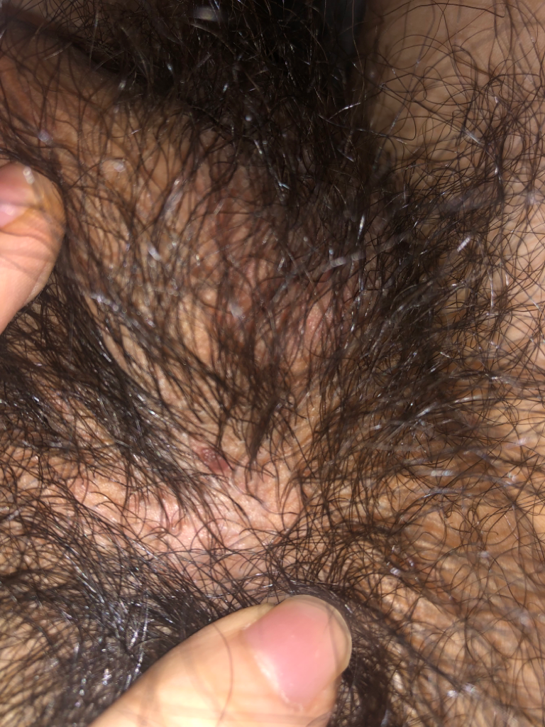 현재 질문자님의 증상으로 보아 성기 모낭쪽에 발생한 모낭염일 가능성이 높아보입니다. 일단은 항생제 성분이 포함된 연고를 도포하시면서 치료를 해보시는 것이 맞을 것으로 보이며, 도포 후 호전되는지 경과관찰 해보시기 바랍니다.