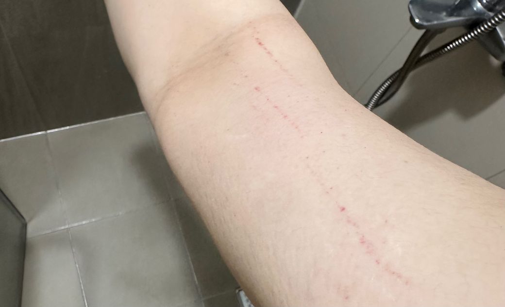 사진의 소견만 놓고 정확한 감별 및 평가가 가능하지 않습니다. 다만 생긴 모양으로 보았을 때에는 모르는 사이에 무언가에 긁히면서 발생한 가벼운 찰과상 소견일 가능성이 가장 높아 보입니다. 보다 자세하게 그리고 구체적으로 감별 및 진단을 받아보시길 희망한다면 실질적으로 피부과 등 진료 및 평가를 받아보시는 것이 적절할 것으로 사료됩니다.
