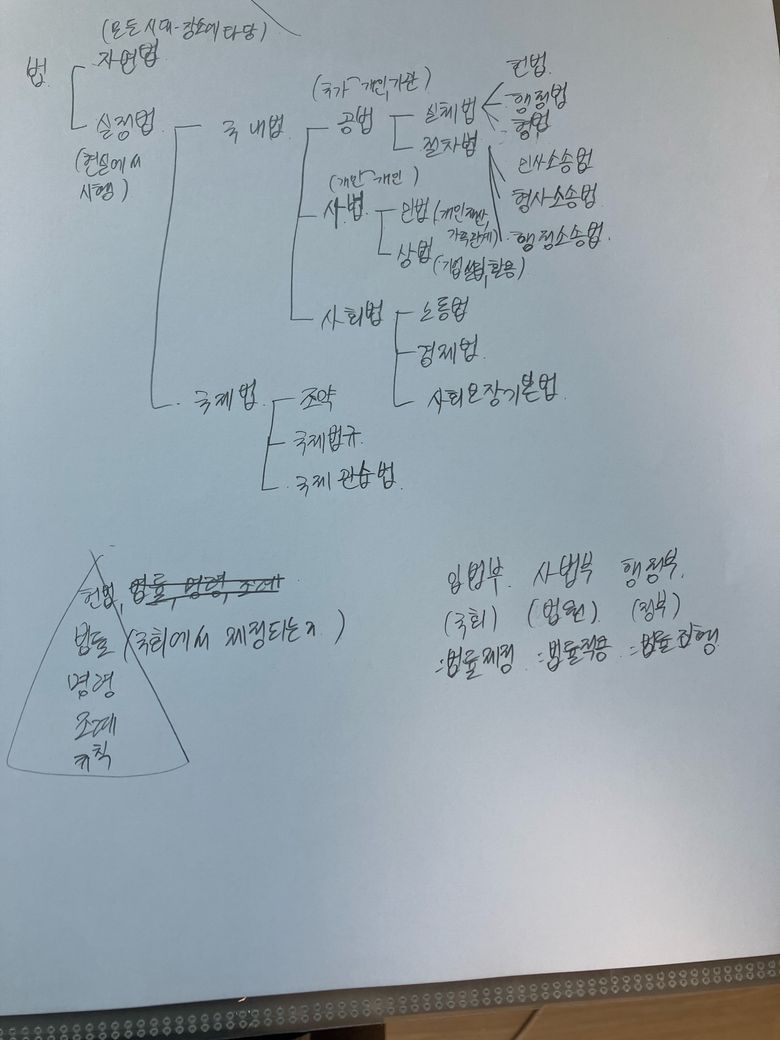 입법부 사법부 행정부는 위의 법 구조에서 어디에 석하나요? 그리거 세모표시한 부분은 위에서 어떤거에 속하나여 아님 그냥 따로 구분하는 말인가요?