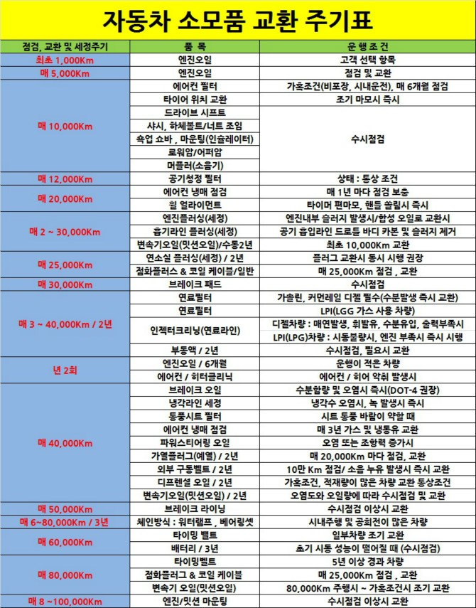 보통 교환주기는 5만~10만km마다 교체를 하면 좋습니다.