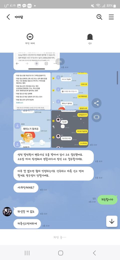 오픈채팅방에서 연락을 하다가 제가 ㅇㄷㅇ이라고 말하고 엉덩이라고 하니깐 라인으로 넘어서가 처음에 이거 맞아 연락이오고 저는 안녕이라고 답변했습니다. 그리고 고소했습니다고 사진을 보냈습니다. 다른곳에서도 당한사람은이 많습니다.진짜로 고소를 당하는건가요?