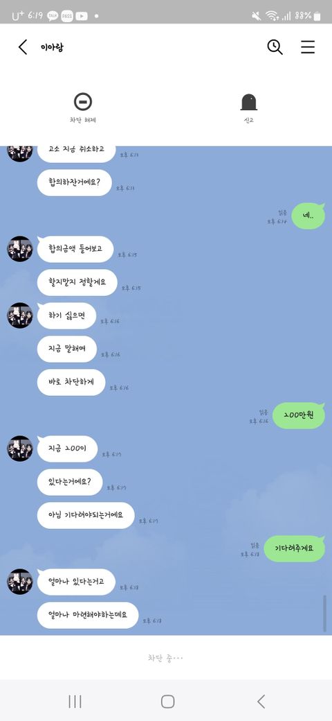 카톡에서 라인으로 넘어가서 연락했는데 고소를한다고 했습니다