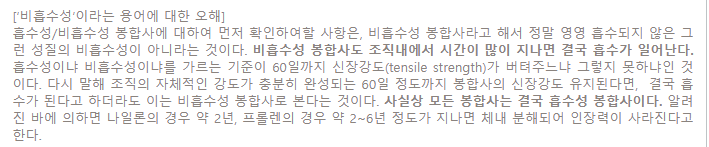 출처 : https://health.chosun.com/healthcareColumn/column_view.jsp?idx=10299비흡수성 봉합사도 결국에는 2-3년이 지나면 흡수가 되고 인장력이 유지되지는 않습니다.
