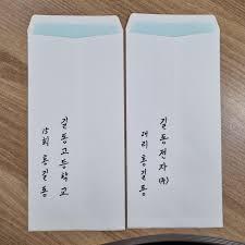 부의금 봉투에 이름을 쓸때는 봉투 뒷면 왼쪽 하단쪽에 세로 쓰기로 이름을 적는것이 기본적인 예절이라고 합니다.