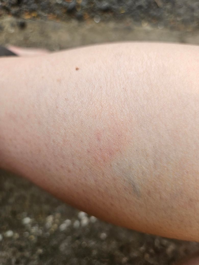 빨간점 비슷하게 있고 두드러기처럼 살짝부풀더니 담날 되서보니 사진처럼 그 빤간점 주변으로 옅은갈색멍이 있어요