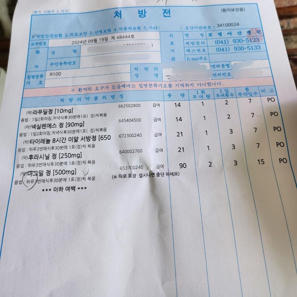 안녕하세요 대장염 치료로 입원후 퇴원처방전으로 최근 타병원에서 처방을 받은 내역이