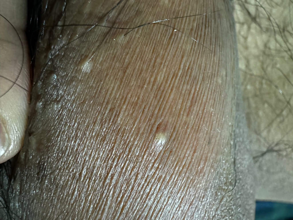 모양자체만으로는 곤지름 보다는 모낭염 및 모낭의 비후 등으로 볼 수 있겠습니다.