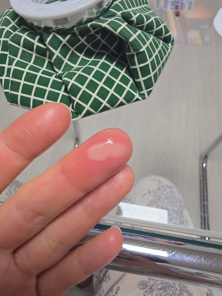 주방 장갑끼고 뚝배기를 들었는데도 데었는데 손가락이 하얗게 되고 통증이 있어요