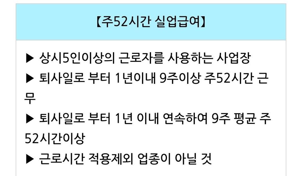 주 52시간 초과근무 퇴사시 실업급여 조건이 어떻게되나요?