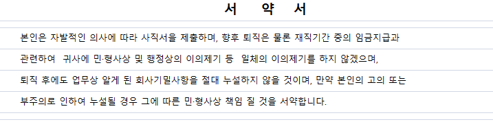 1. 일단 서약서에 서명을 하더라도 퇴직금 및 임금이 정확하게 지급되는지를 확인하고 서명을 하여야 합니다.