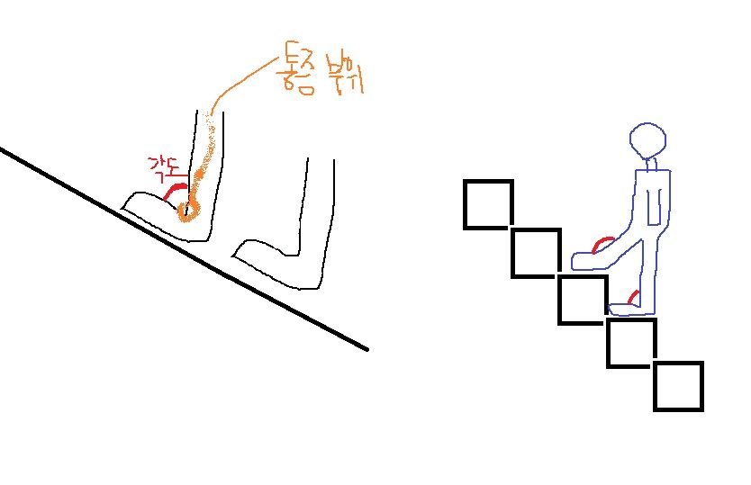"오르막시" 발목의 각도가 좁여지면서,
