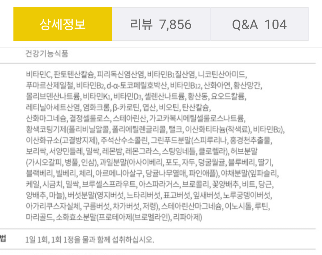대부분은 비타민 위주이며, 나머지 생약이나 과일과 관련된 성분들은 부원료로 매우 적은양이 들어갔을 것으로 예상됩니다