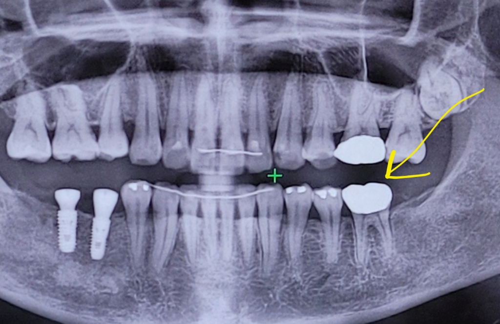 사진의 노란 화살표인 아래쪽 어금니입니다.