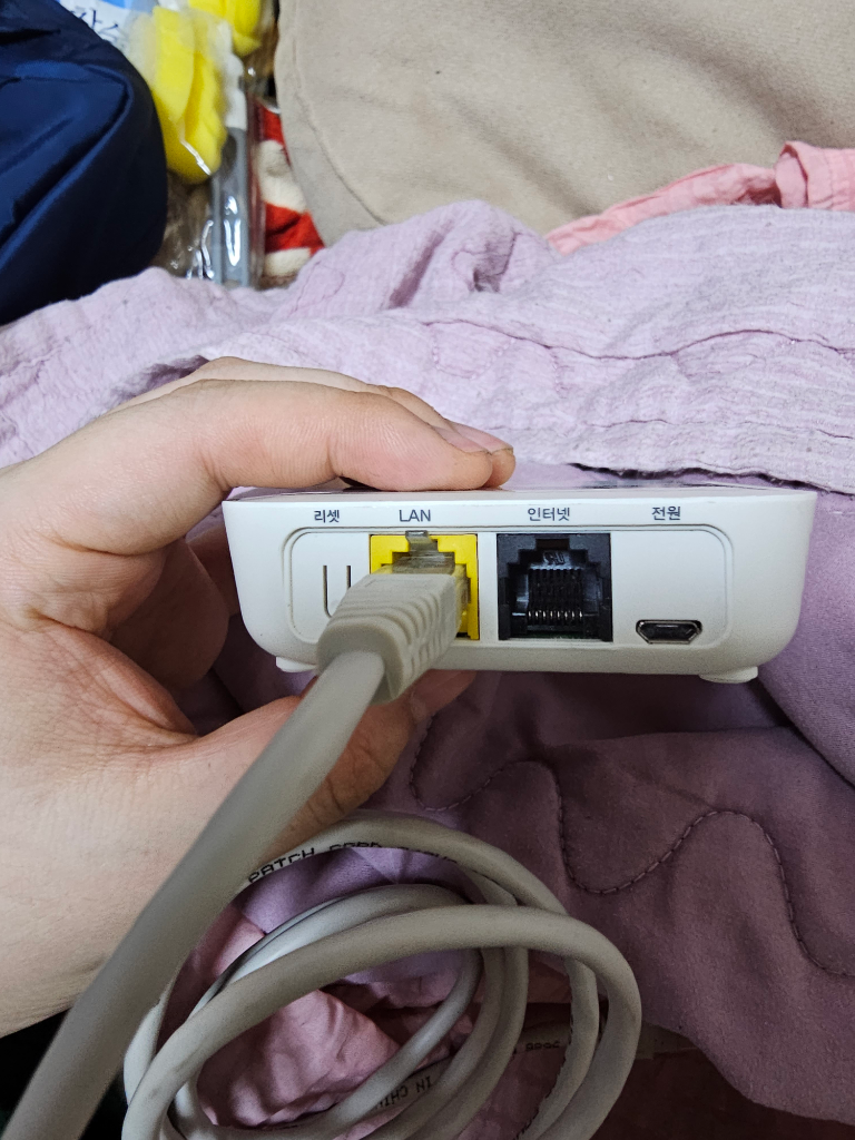 사진도 첨부해드릴께요. 인터넷과 랜선이 있는데 어떤 케이블을 연결해야 하나요? 케이블 구분이 안되네요