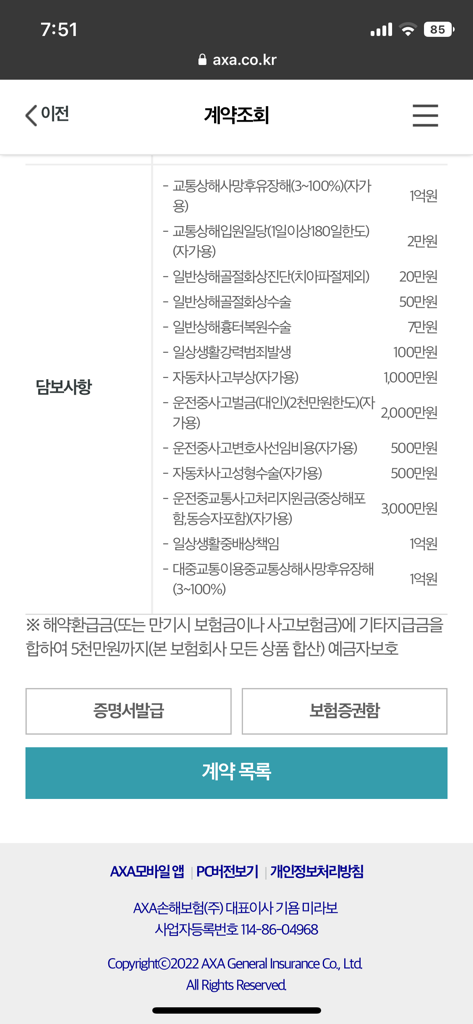 귀하가가입한 운전자보험 보당내용이 조금 미흡합니다