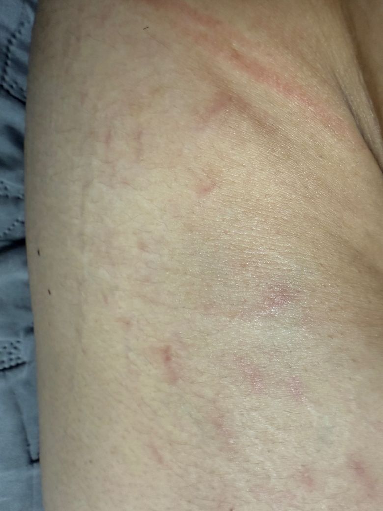 사진의 내용으로 정확한 원인은 알 수 없으며 피부과에서 진료를 받아보시는 것을 권해드립니다.