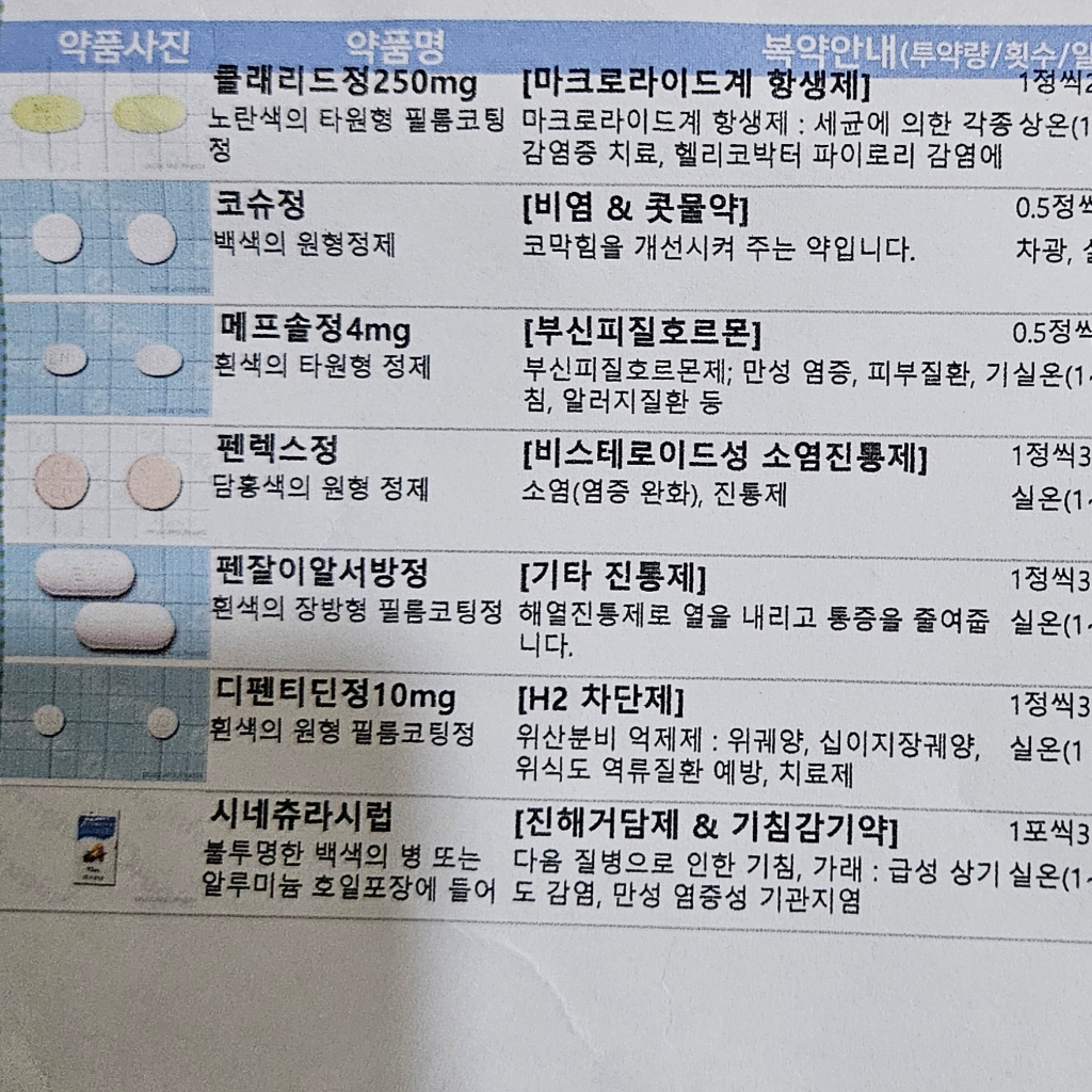 두번째사진이 기존약 다먹고 한번 더 방문했을때 처방받은 약인데요. 궁금한게