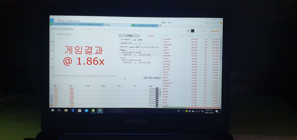 그래프에 배팅해서 금액을 버는것인데 하는게 잘못이였네요