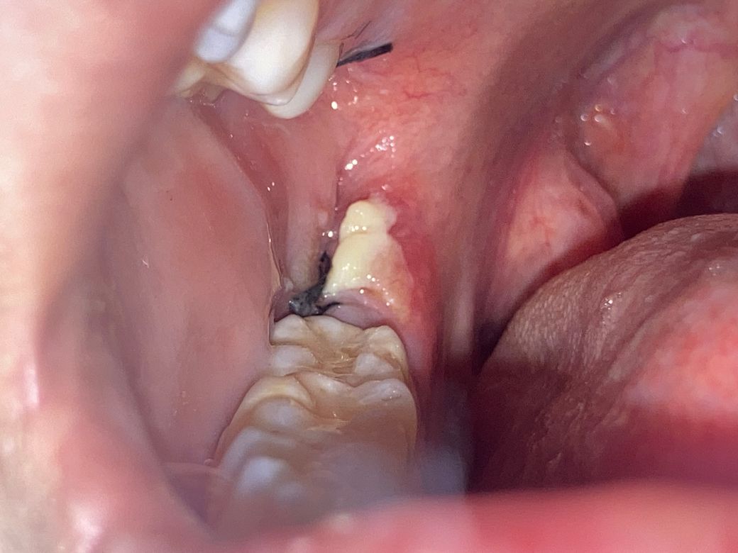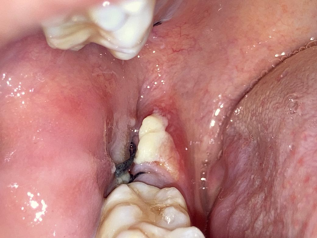 이게 뭔지 알 수 있을까요 ㅜㅜ 위아래 동시에 뽑앗는데 아래에만 생겼어요 혹시 몰라서 제거 안했고 가글 열심히 했어요 약도 잘 챙겨먹구요 ㅜㅜ 다른 아빨 뺏을때는 이러지 않았어요