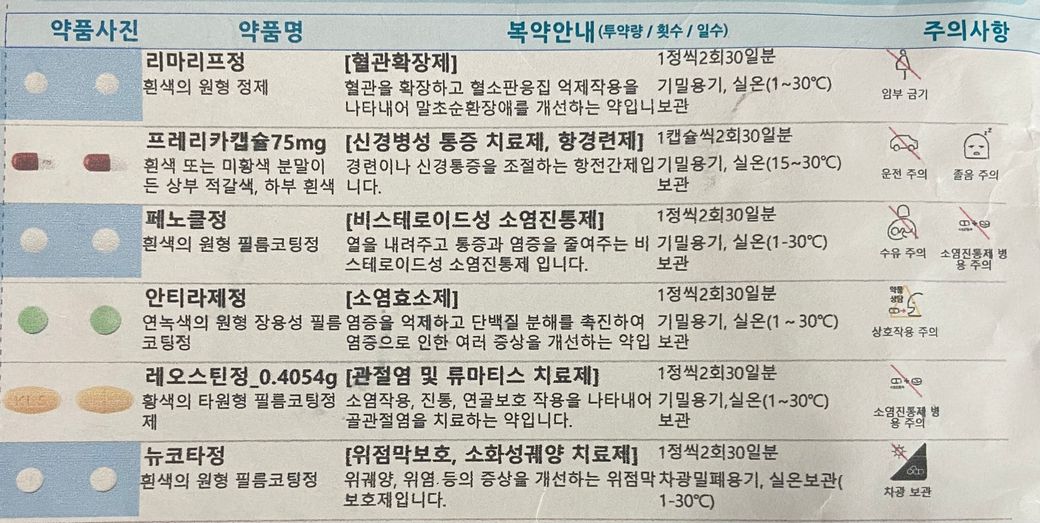 새로 처방 받은 약은 아래 사진으로 첨부하겠습니다.