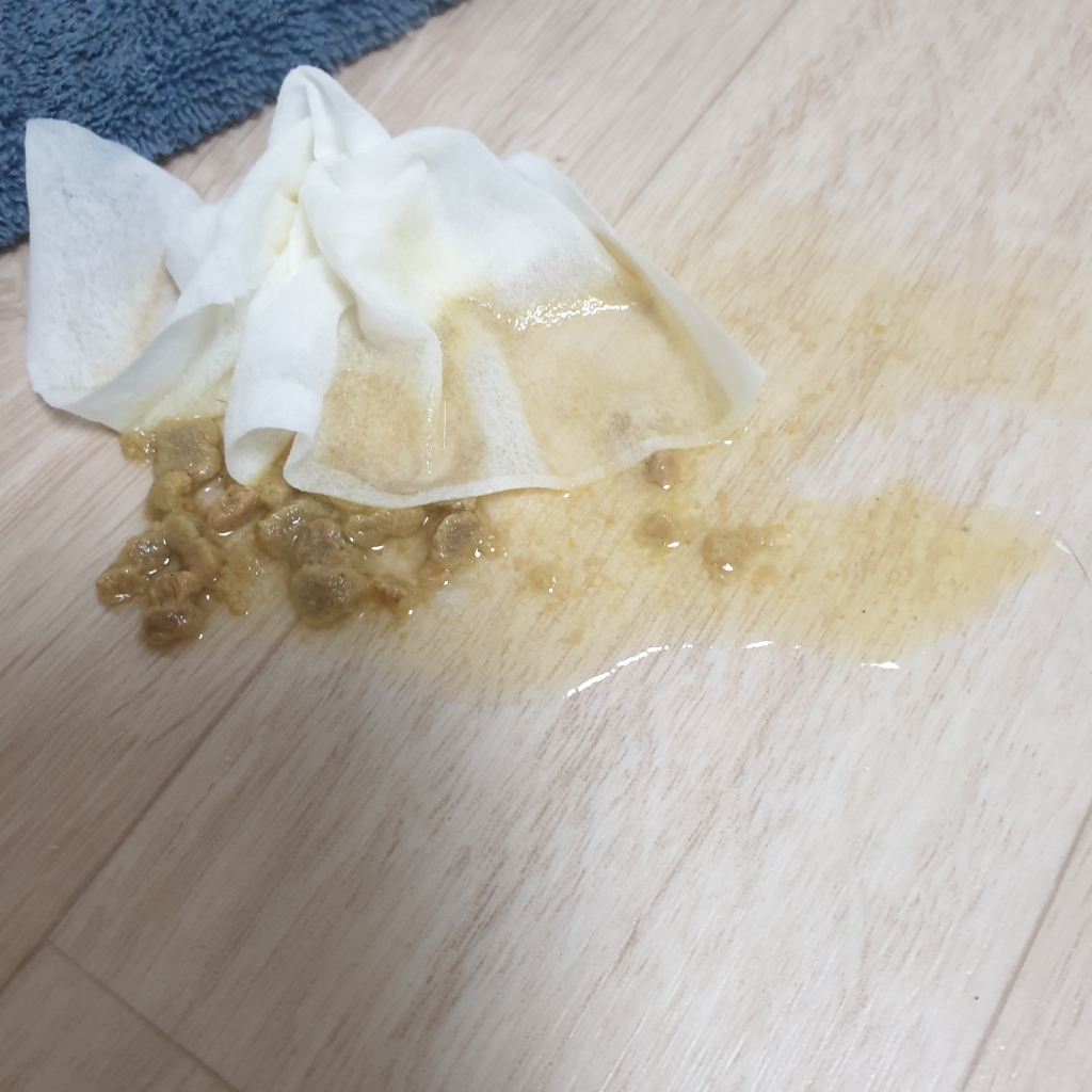 처음엔 마지막 사진처럼 토해서 슬로우 식기를 사줬는데 그 후엔 소화된 다른 토를 하는 듯 합니다