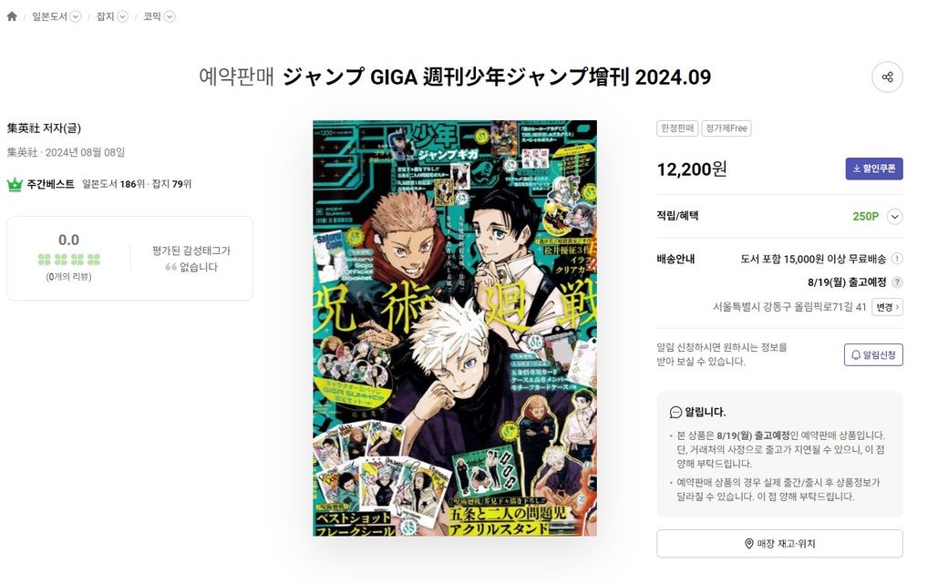 예약판매 일본 도서 구입시 재고 없음으로 구입불가 확인