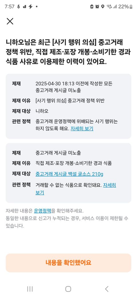 네이버페이 포인트 판매글은 당근마켓 정책상 원천적으로 금지된 거래에요 근데 질문자님 말씀하신대로 지역 중복 게시글도 3개 이상 올리시면 제재 대상이 되는데 이건 스팸으로 분류가 돼요 아 근데 신고 들어오면 당근마켓은 일단 제재하고 나중에 검토하는 방식을 택하고 있어서 억울한 일이 발생할 수도 있답니다 이제 다른 지역에 글 올리실 때는 한 지역당 1개씩만 올리시는 게 낫다고 봅니다 글고 채팅에서 말다툼이 있었다면 상대방이 채팅 내용 캡쳐해서 신고했을 가능성도 있는데 이런 경우도 제재 사유가 돼요 이제 다음부터는 채팅할 때 감정적인 대응은 피하시는 게 좋겠고 문제 있는 사용자는 바로 차단하고 신고하는 게 현명한 대처방법이 되겠네요..!