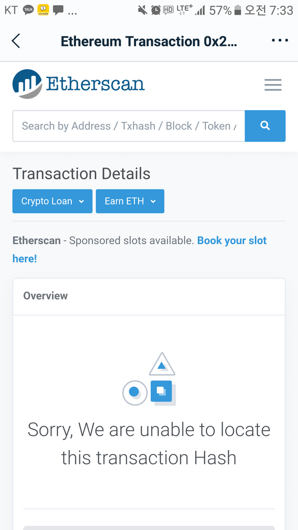 마이이더지갑에서 코인을 거래소로 보내다가 Sorry, we are unable to locate this transaction hash 이렇게 뜨네요