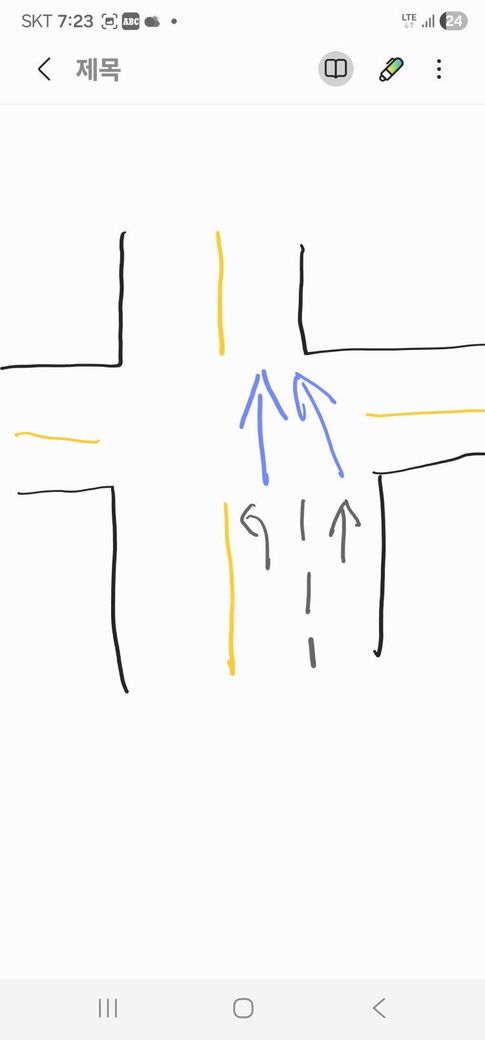 이런 경우 비보호 좌회전 차선에서 직진하는 차량과 2차