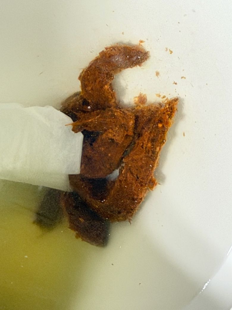 우선 변 색이 당근색에 가까운 붉은 색으로 보이는 경우는 실제 출혈이 아니라 음식 영향일 가능성이 상당히 높습니다. 특히 전날 섭취한 꼼장어, 닭발처럼 고추기름이 많은 음식은 변을 주황색에서 붉은색까지 착색시키는 경우가 흔합니다. 이런 경우 변 전체가 균일하게 물들듯이 색이 변하고, 선혈처럼 선명하게 묻어나거나 혈덩이 형태로 보이지 않는 특징이 있습니다.