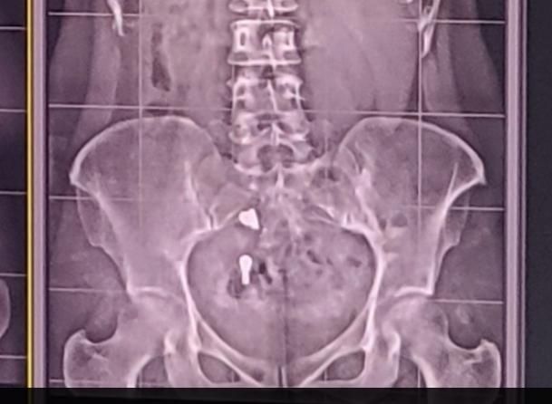 경추이상으로 상반신 엑스레이를 찍었는데 밑에보니까 결석같은게 보이는데 맞나요? 두개나있어요 (청바지입고 찍긴했습니다..)분석부탁드립니다