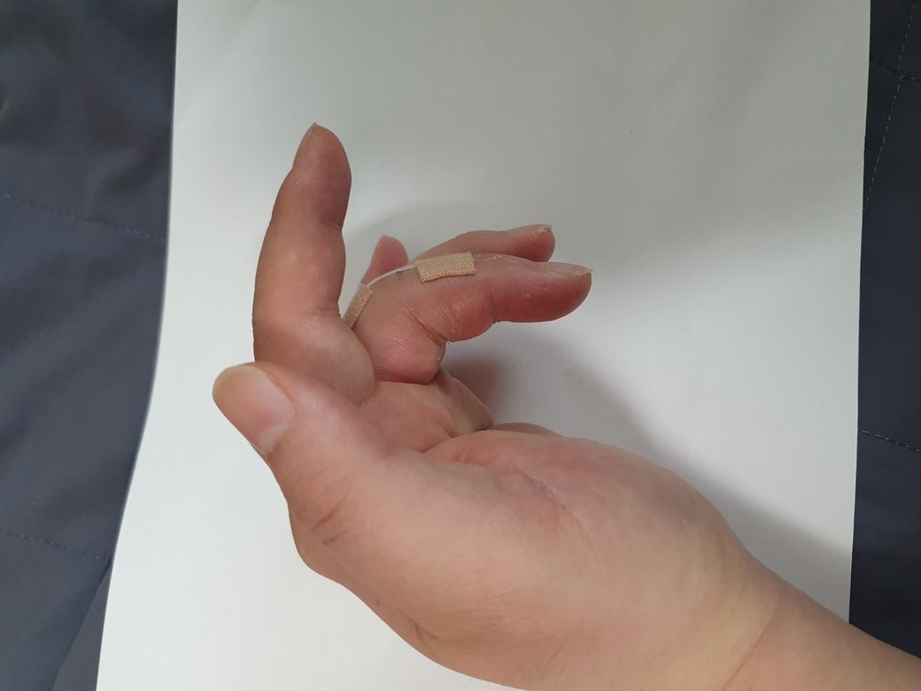 당황스러웠지만 손가락 힘줄 수술하고 오늘 깁스 풀었다고 하니까