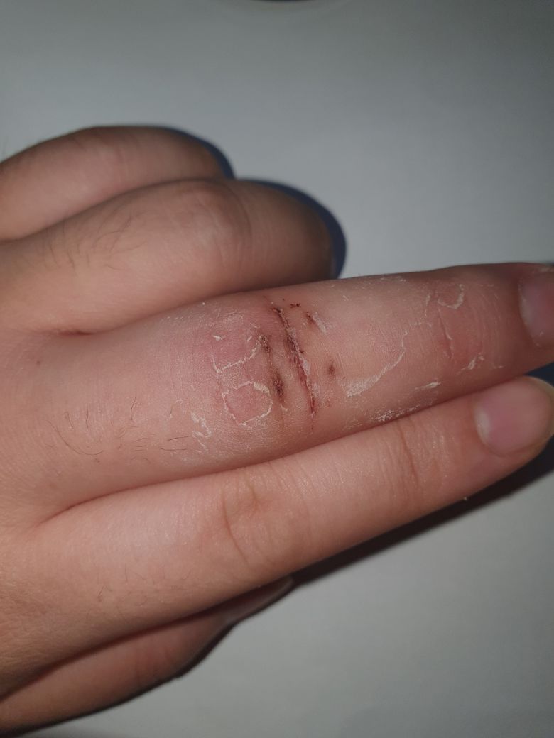 중지 1관절 바로 앞이 칼에 가로로 깔끔하게 찍혀서 종합병원 응급실로 가서 입원하고