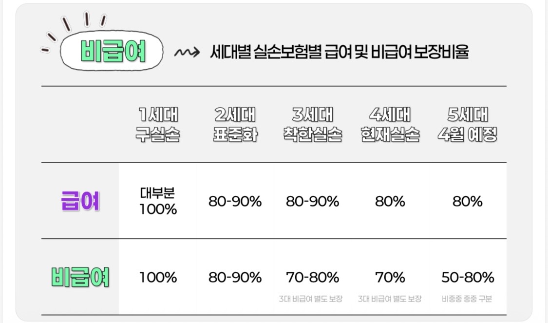 2021년 7월 이후 (4세대): 급여 80%, 비급여 70% 보상