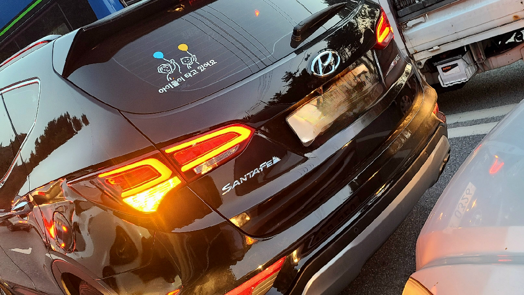지난 10월12일 퇴근시간대 신호 정차 중인 앞차 뒤에 정차직후 보조석 큰가방물건 쳐다보며 넘어가지 않도록 잡아당기다 브레이크에 발을 떼게 되었는지 앞차와 추돌 잡촉사고남.