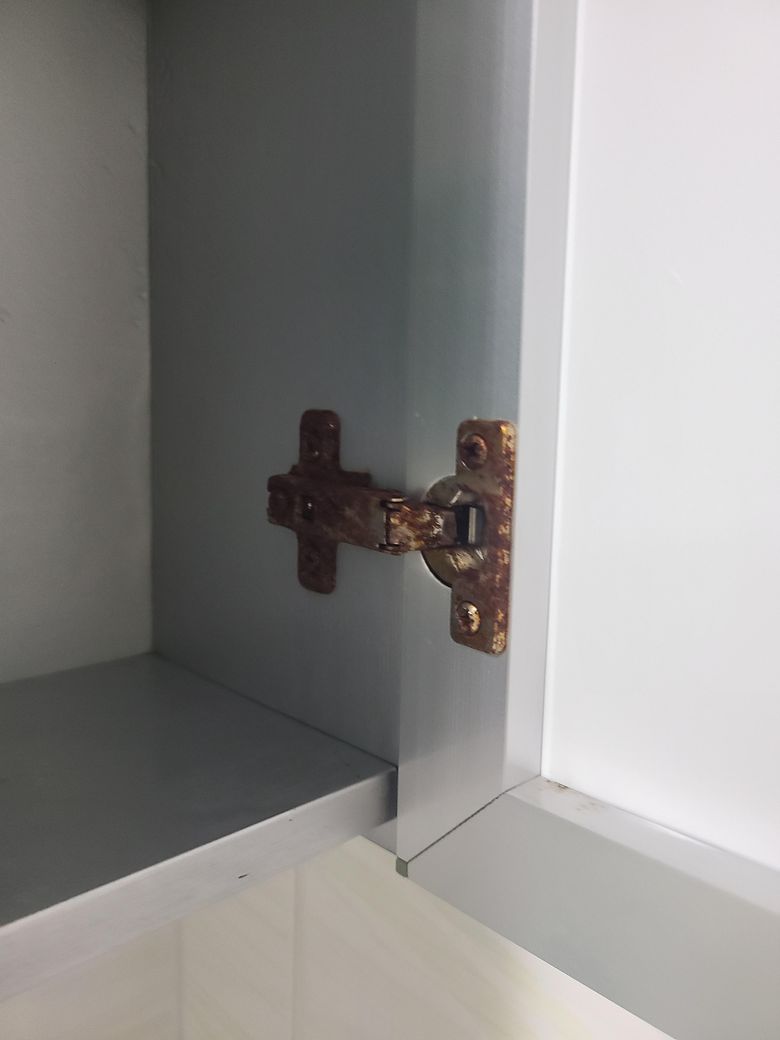 화장실 수납장하고 전등이 특히 부식이 심하고 녹제거제는 소용도 없는 상황인데