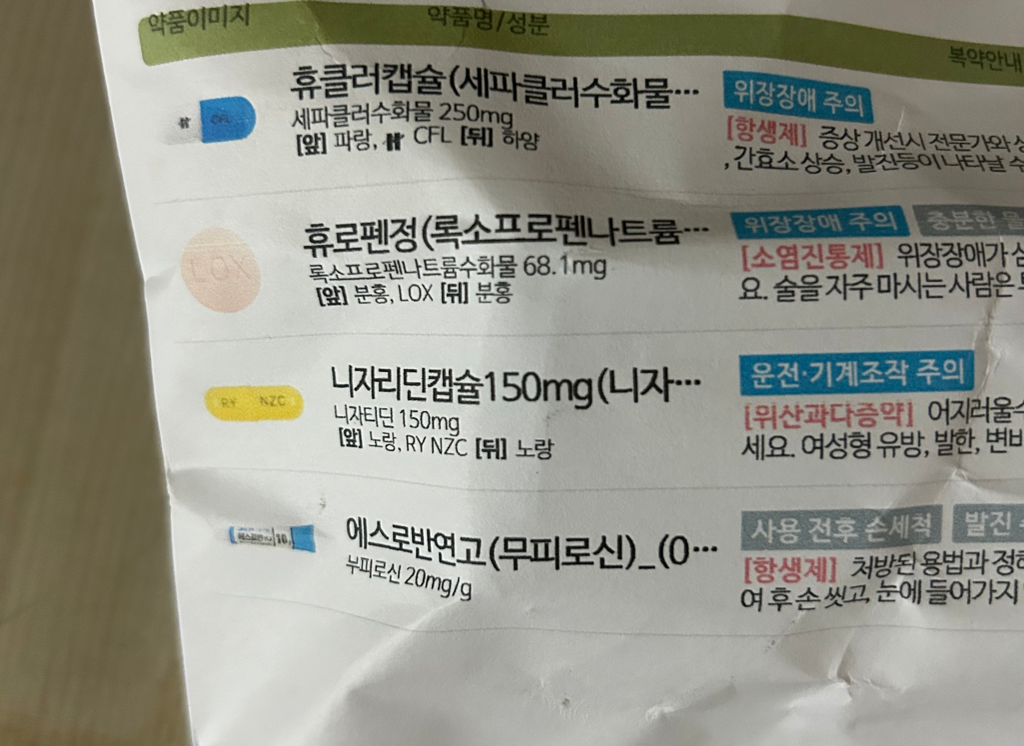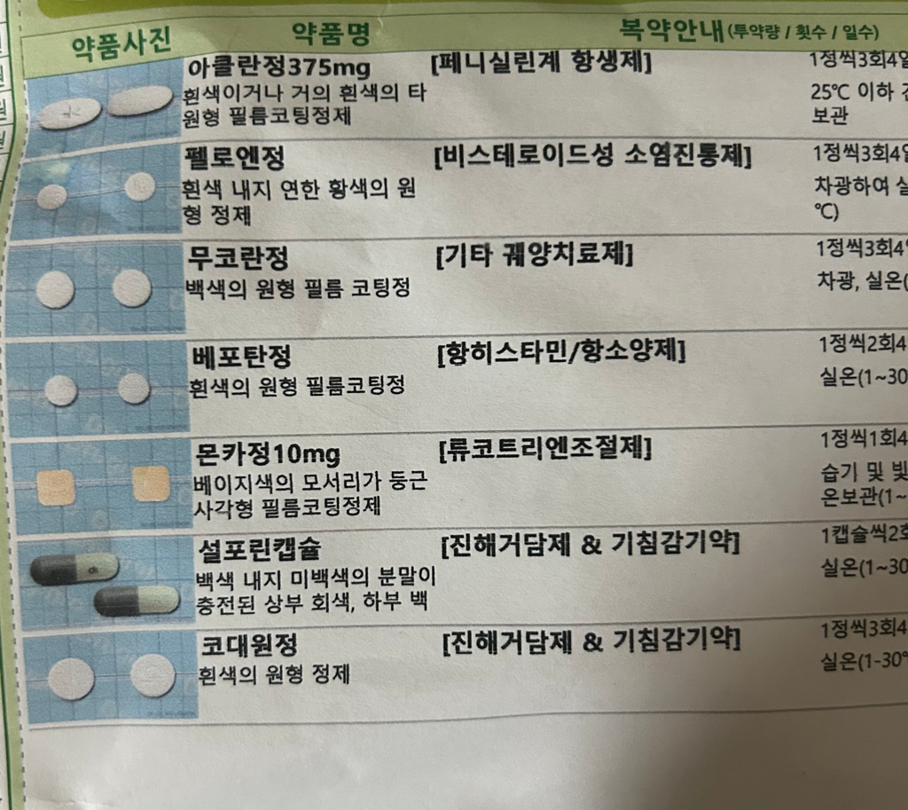현재 처방받으신 감기약 안에는 피부약으로 받은 약들과 모두 중복이 되어있는 상태입니다. 다시말해 감기약만 복용하여도 피부약이 하는 기능을 전부 커버 가능하며, 즉 피부약은 복용하시지 말고 연고만 바르며, 감기약을 꾸준히 복용해주시면 되겠습니다.