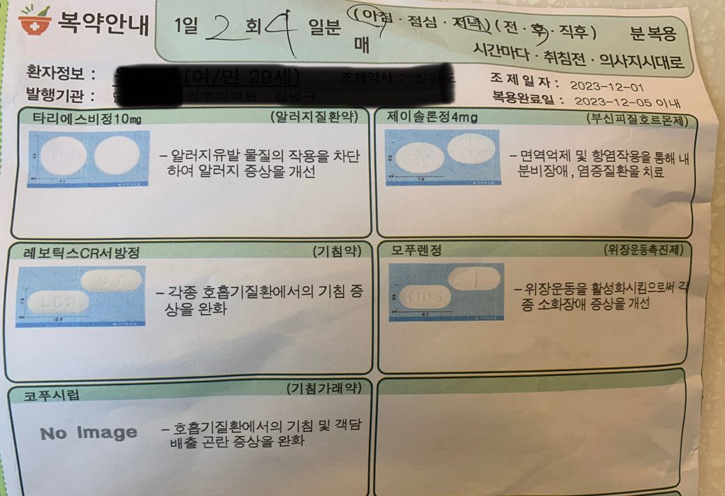 근데 약국에서 처방약 받는데 약사선생님께서 “알러지약 4일치”라고 말씀하셨고