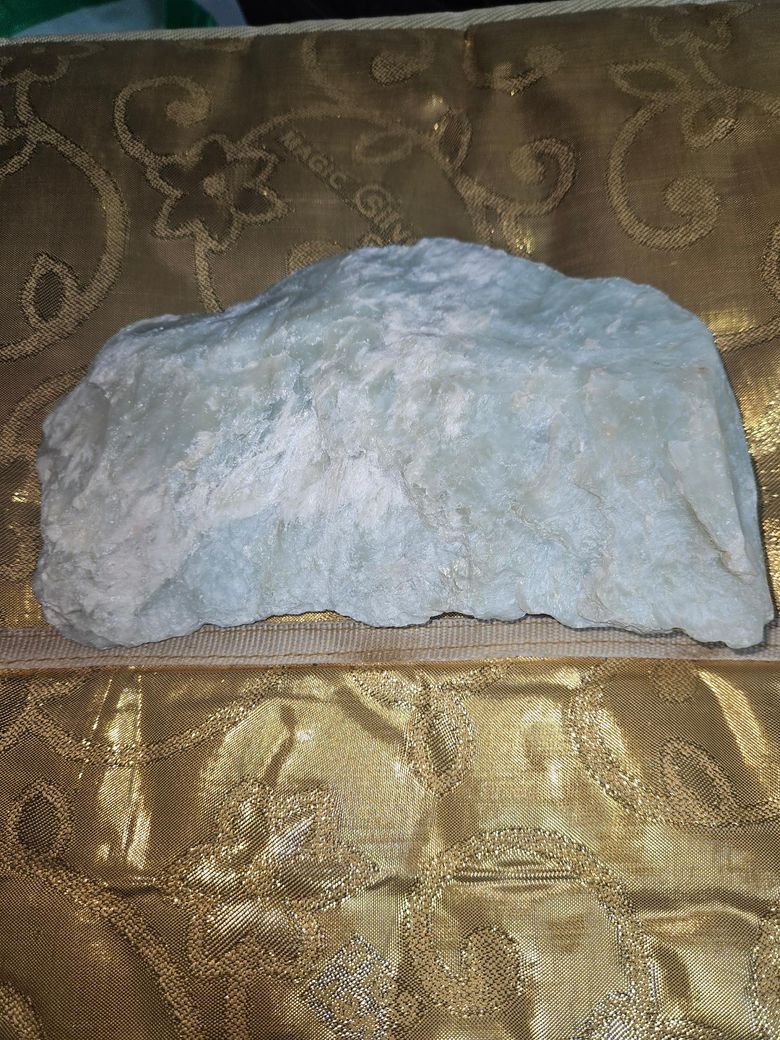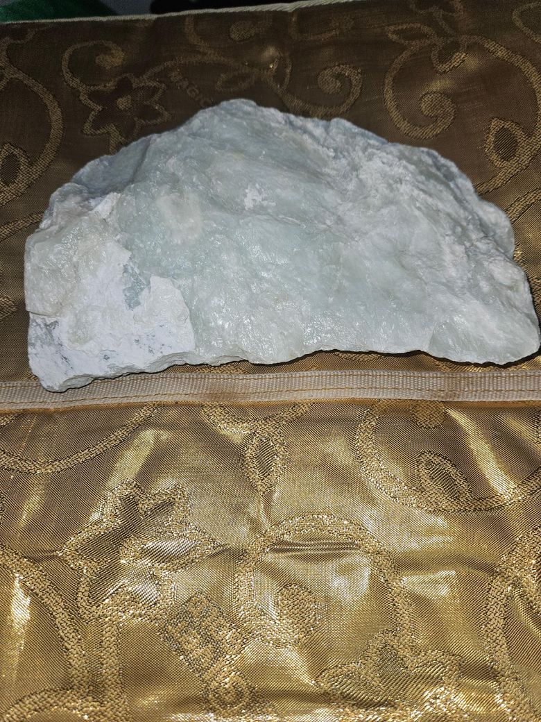사진만으로 정확한 판별은 어렵지만 색과 질감상 연옥(네프라이트)일 가능성이 있습니다 .옥은 전통적으로 안정과 행운의 상징으로 여겨집니다. 실제 가치는 색, 투명도 균열 정도에 따라 크게 달라지므로 보석 감정기관에 확인받는 것이 가장 정확합니다