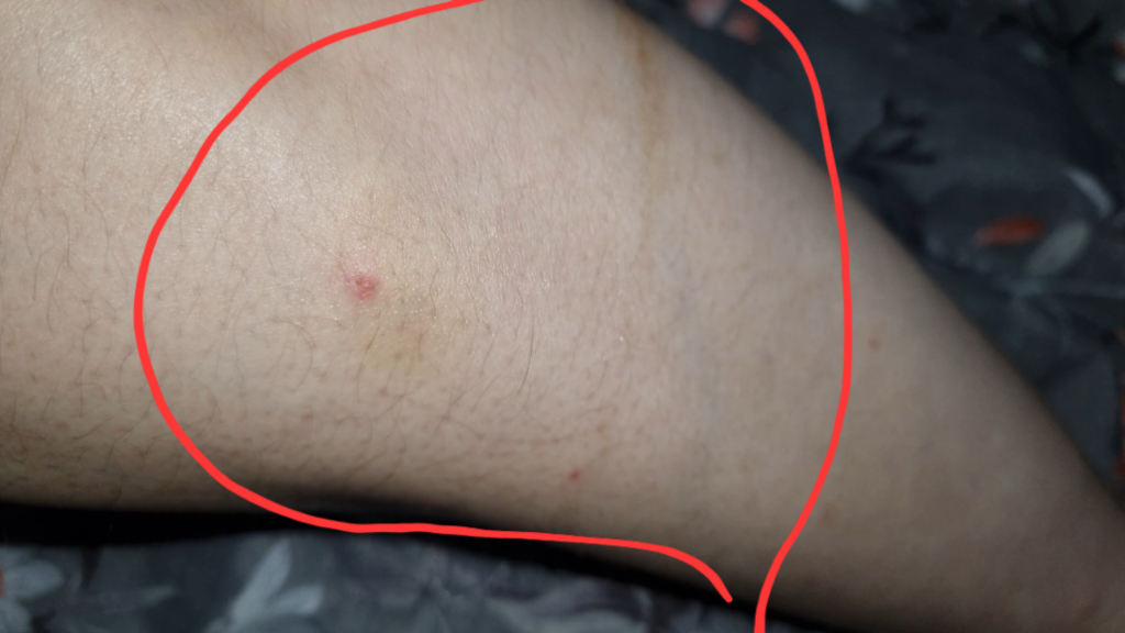 팔 다리에 빨간 점이 올라오고 등,허리부분에는 갈색갈 반점이 올라옵니다